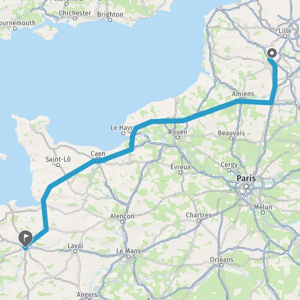 Prendre à droite et rejoindre A84 E401. Continuer sur 165 kilomètres