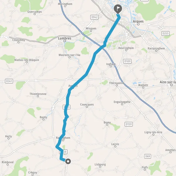 Au rond-point, prendre la 2ème sortie sur D928 (Route de Saint-Omer) et continuer sur 2,7 kilomètres