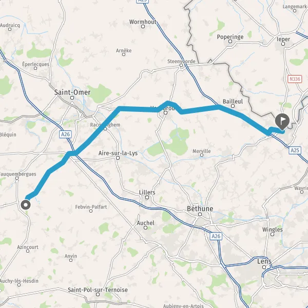 Prendre à droite et rejoindre A25 E42. Continuer sur 12 kilomètres