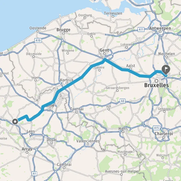 Prendre à droite et rejoindre A22. Continuer sur 11 kilomètres