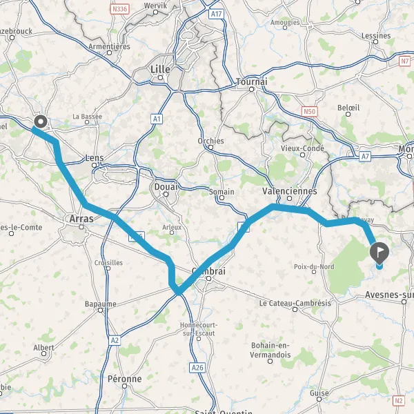 Prendre à droite et rejoindre A26. Continuer sur 250 mètres
