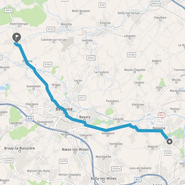 Tourner légèrement à droite sur D937 (Rue de Saint-Venant) et continuer sur 9,3 kilomètres