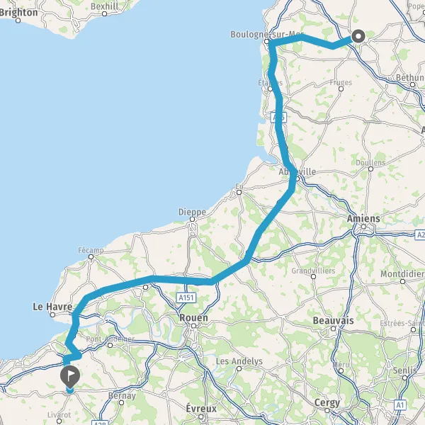 Prendre à droite et rejoindre A29. Continuer sur 38 kilomètres