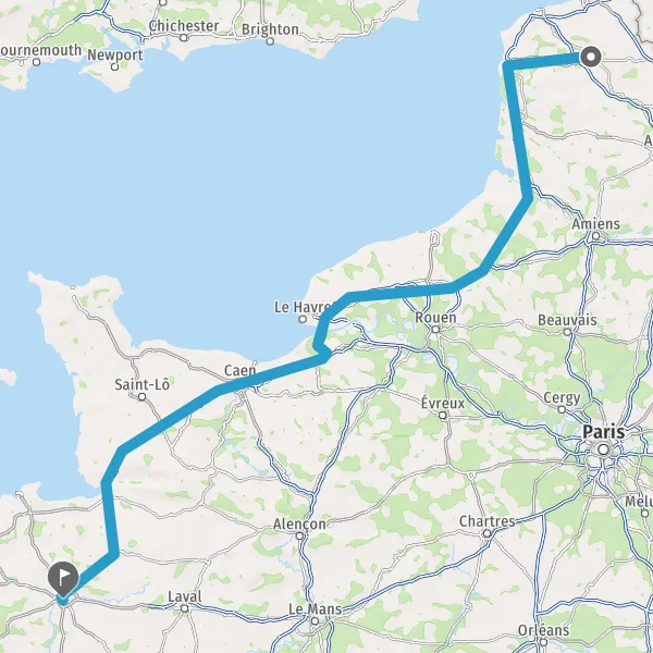 Prendre à droite et rejoindre A84 E401. Continuer sur 165 kilomètres