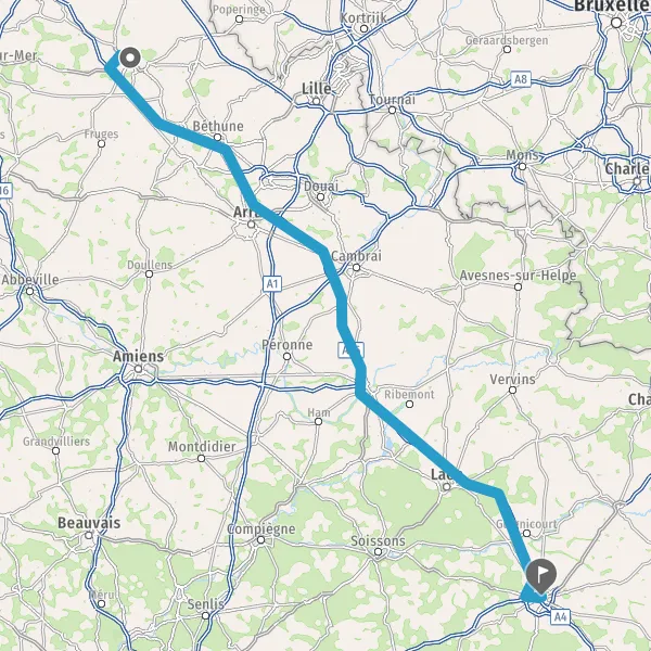 Prendre à gauche et rejoindre A26 E15. Continuer sur 222 kilomètres