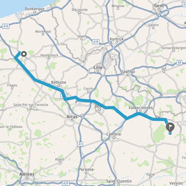 Prendre à gauche et rejoindre A26 E15. Continuer sur 45 kilomètres