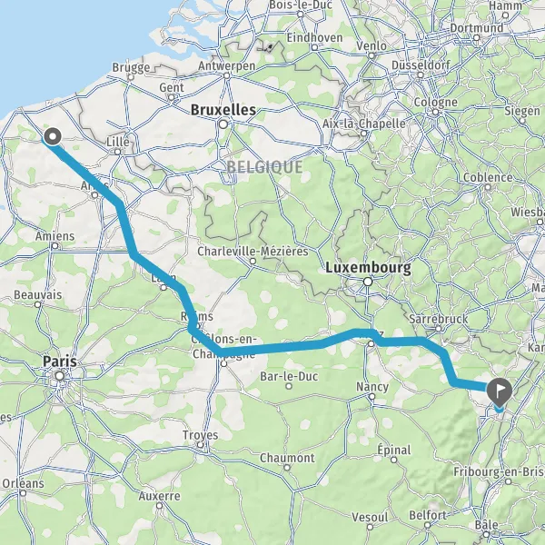 Prendre à gauche et rejoindre A26 E15. Continuer sur 224 kilomètres