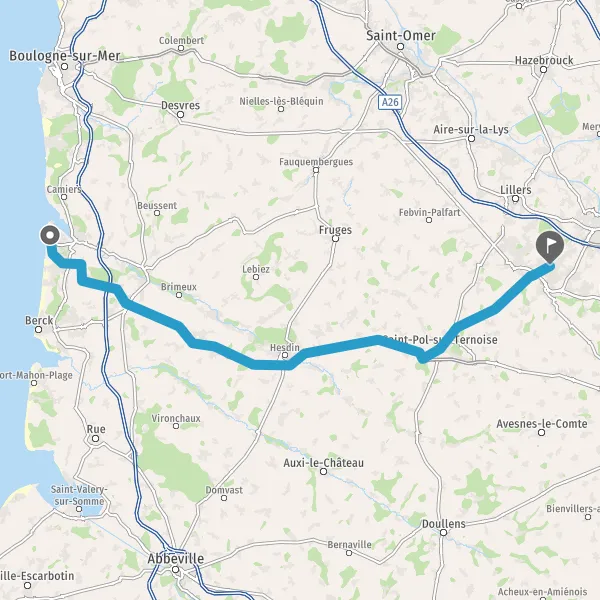 D901A26BéthuneSaint-OmerNeuville-sous-MontreuilFrugesAire-sur-la-Lys