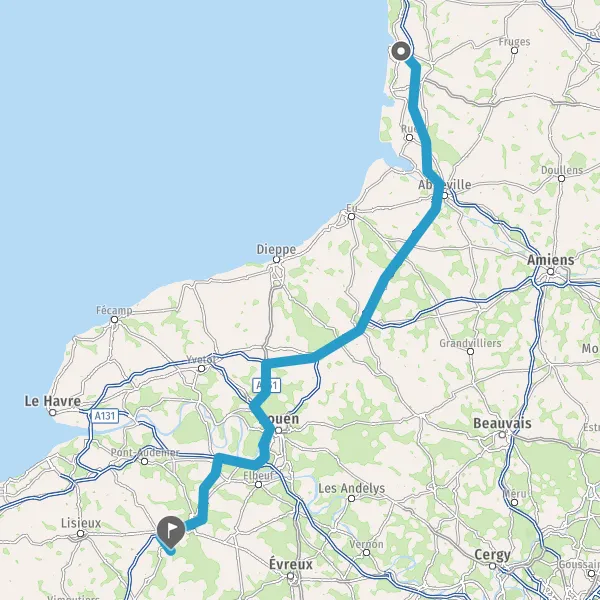 Prendre à droite et rejoindre A28 E402. Continuer sur 37 kilomètres