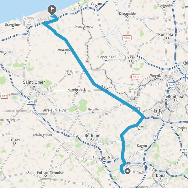 Continuer et rejoindre A25 E42. Continuer sur 53 kilomètres