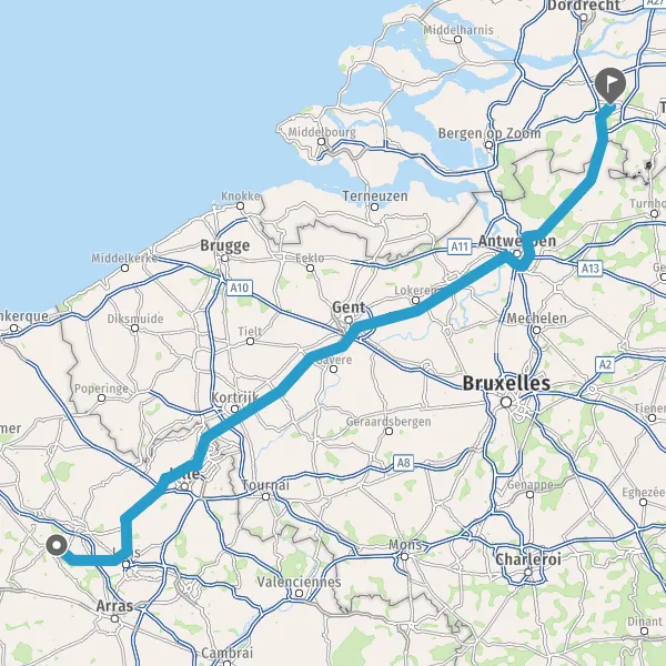 Prendre à droite et rejoindre A22. Continuer sur 11 kilomètres