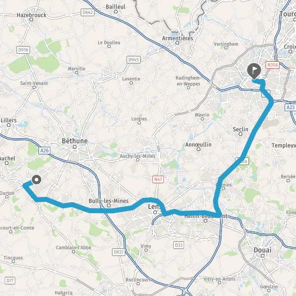 | Distance en voiture | 45,2 km à 67 km |