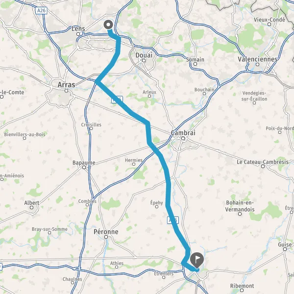 Prendre à droite et rejoindre A26 E17. Continuer sur 60 kilomètres