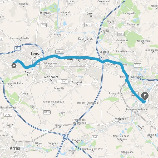 Prendre à droite et rejoindre A21. Continuer sur 9,9 kilomètres