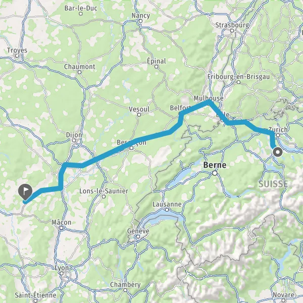 Prendre à gauche et rejoindre A36 E54 E60. Continuer sur 228 kilomètres