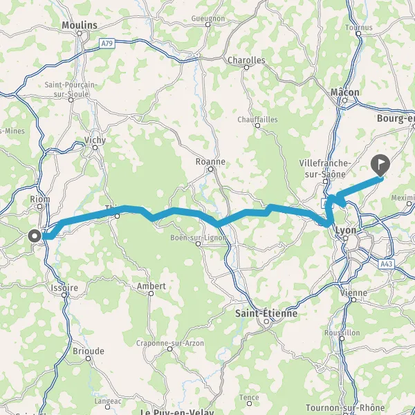 Prendre à droite et rejoindre A89. Continuer sur 59 kilomètres