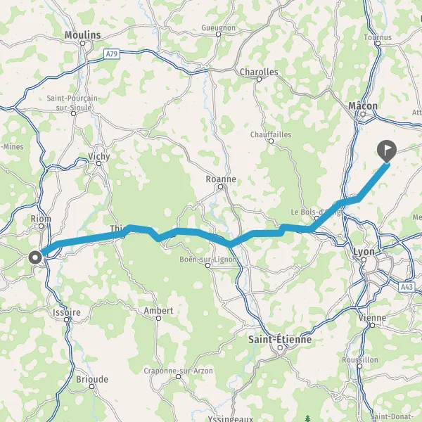 Prendre à droite et rejoindre A89. Continuer sur 36 kilomètres