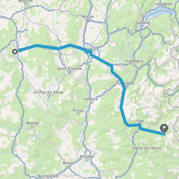 Continuer et rejoindre Tunnel de la Duchère. Continuer sur 16 kilomètres