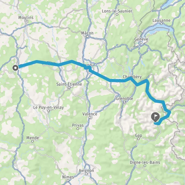 Prendre à droite et rejoindre A43 E70. Continuer sur 65 kilomètres
