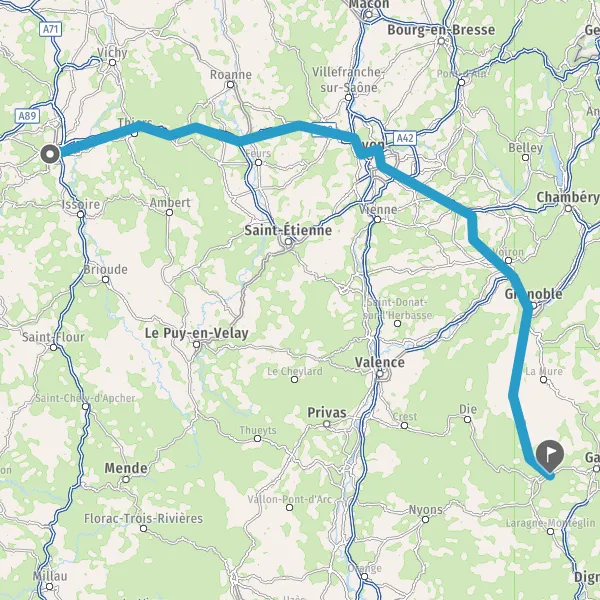 Prendre à droite et rejoindre A48. Continuer sur 51 kilomètres