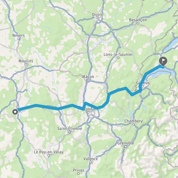 Prendre à droite et rejoindre A42. Continuer sur 40 kilomètres