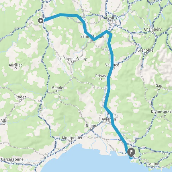 Avec le mode voiture, vous pouvez configurer vos options (type de véhicule, autoroute ou non, péage ou non, distance la plus courte), tout en ayant accès aux infos de circulation grâce à notre service d'info-trafic en temps réel. Ainsi faites des économies sur le coût ou la durée de votre voyage, en trouvant le trajet Clermont-Ferrand Marseille adapté à vos besoins.