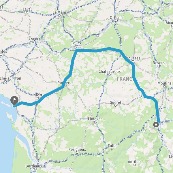 Prendre à droite et rejoindre A89 A71 E11 E70. Continuer sur 212 kilomètres