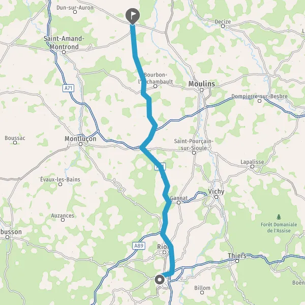 Prendre à droite et rejoindre A89 A71 E11 E70. Continuer sur 66 kilomètres