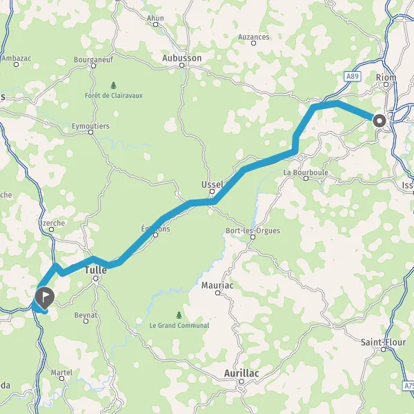 A89E70ParisLyonClermont-FerrandBordeauxLimogesTulle