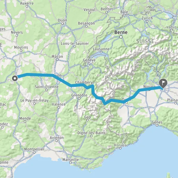 Prendre à droite et rejoindre E712 E70 (E70). Continuer sur 550 mètres