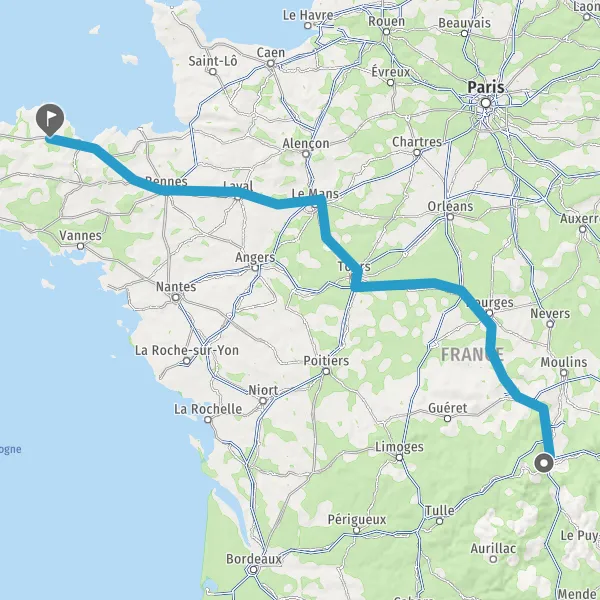 Prendre à droite et rejoindre A85 E604. Continuer sur 105 kilomètres