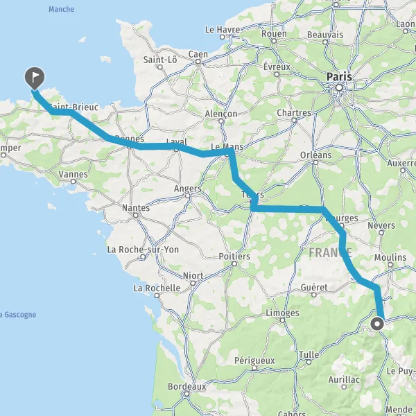 Prendre à droite et rejoindre A85 E604. Continuer sur 105 kilomètres