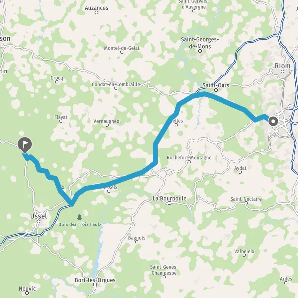 Prendre à droite et rejoindre A89 E70. Continuer sur 47 kilomètres
