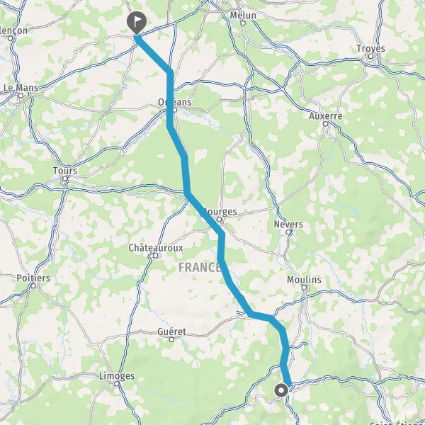 Prendre à droite et rejoindre A89 A71 E11 E70. Continuer sur 285 kilomètres