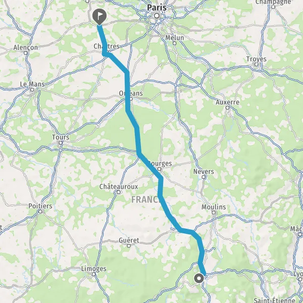 Prendre à droite et rejoindre A89 A71 E11 E70. Continuer sur 285 kilomètres