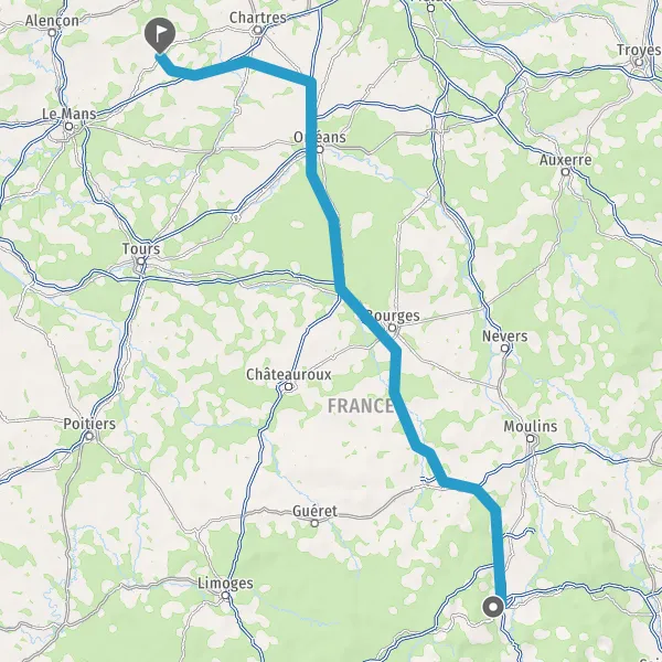 Prendre à droite et rejoindre A89 A71 E11 E70. Continuer sur 285 kilomètres