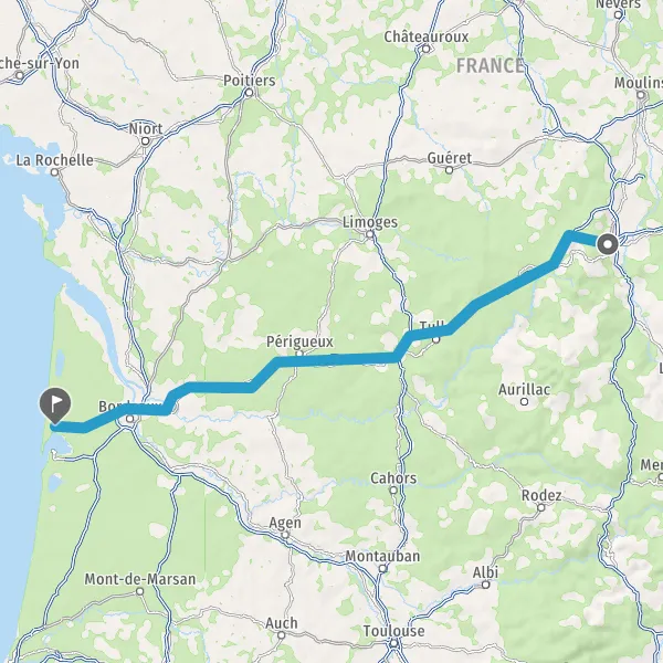 A89E70ParisLyonClermont-FerrandBordeauxLimogesTulle
