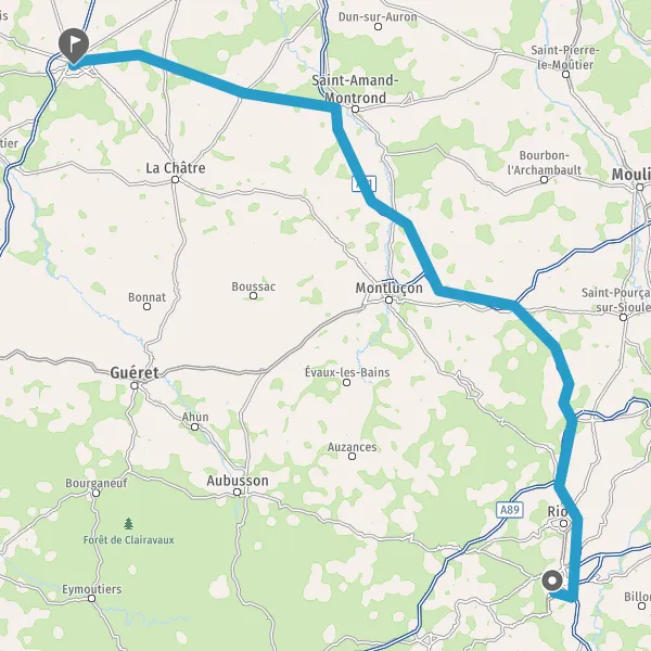 Prendre à droite et rejoindre A89 A71 E11 E70. Continuer sur 134 kilomètres