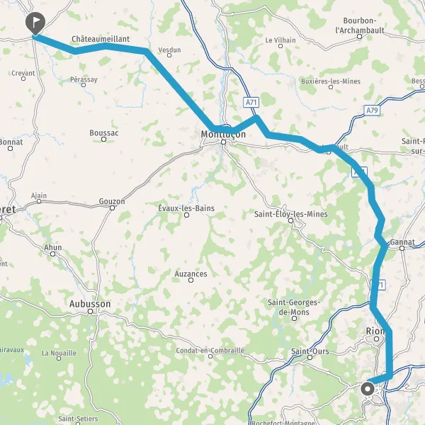 Prendre à droite et rejoindre A89 A71 E11 E70. Continuer sur 90 kilomètres