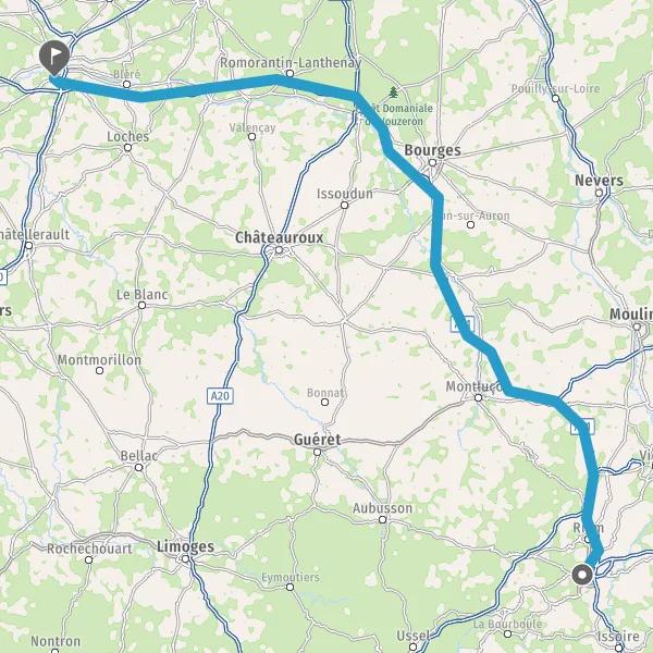 Prendre à droite et rejoindre A89 A71 E11 E70. Continuer sur 212 kilomètres