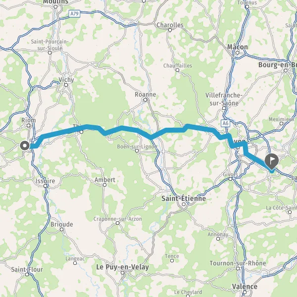 Continuer A89 E70 sur 77 kilomètres