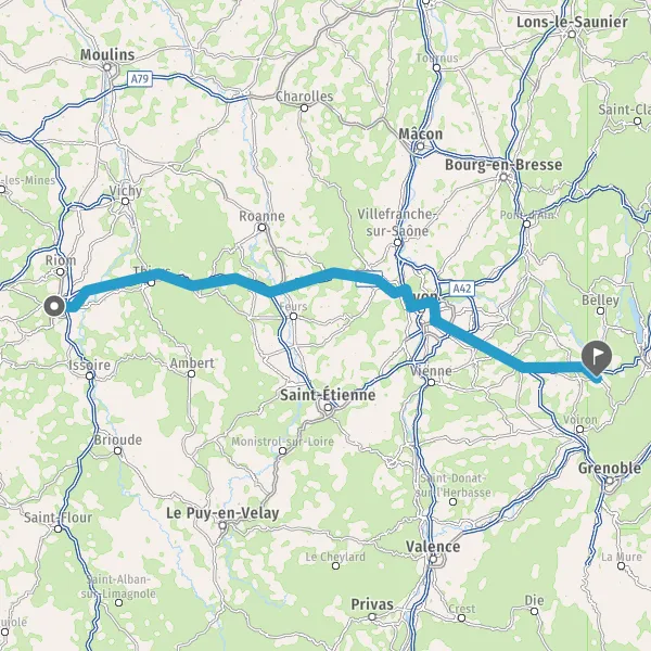 Continuer A89 E70 sur 77 kilomètres