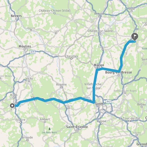 Prendre à droite et rejoindre A89. Continuer sur 59 kilomètres