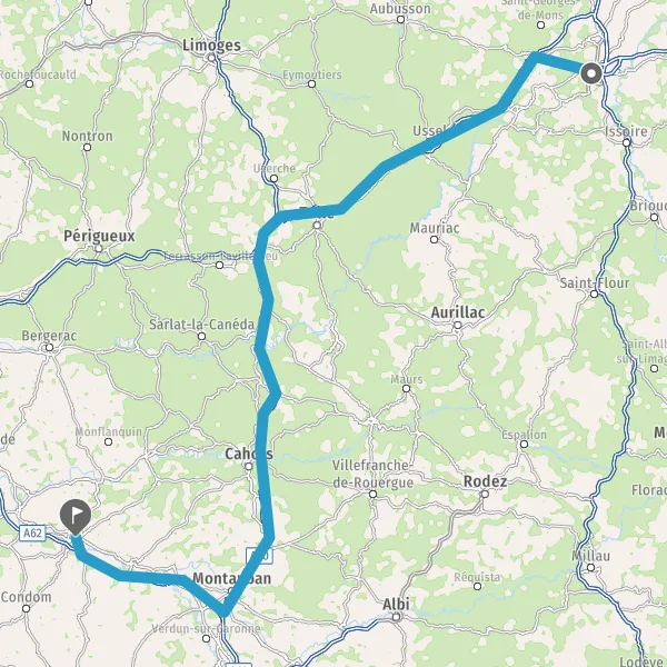 Prendre à droite et rejoindre A62 E72. Continuer sur 67 kilomètres