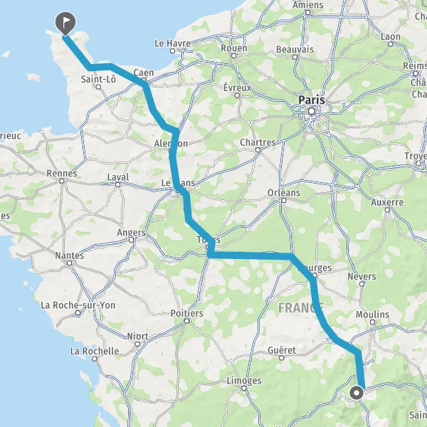 Trajet de Clermont-Ferrand (63000) à Cherbourg-en-Cotentin (50100) en voiture