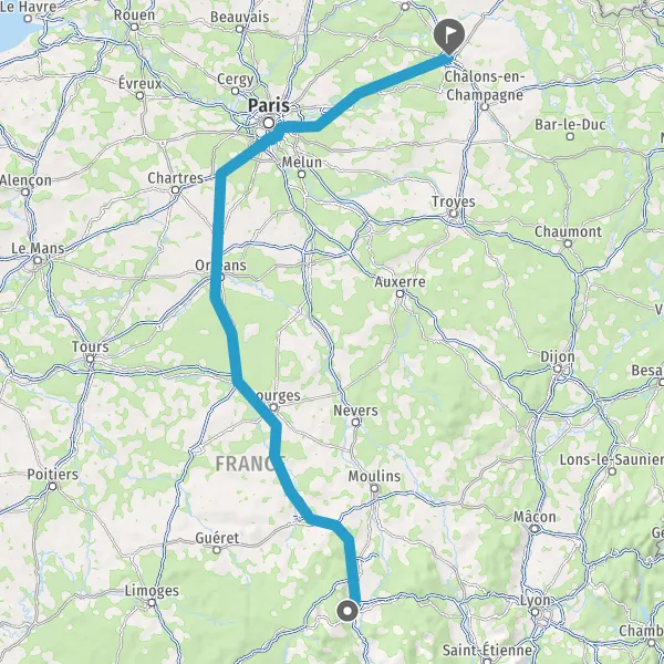 Prendre à droite et rejoindre A89 A71 E11 E70. Continuer sur 285 kilomètres
