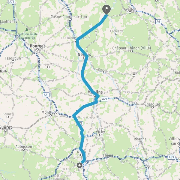 Prendre à droite et rejoindre A89 A71 E11 E70. Continuer sur 66 kilomètres