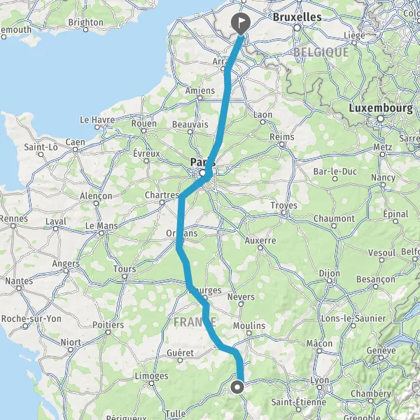 Prendre à droite et rejoindre A89 A71 E11 E70. Continuer sur 285 kilomètres