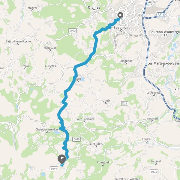 Tourner à droite sur D5 (Route de Murol) et continuer sur 12 kilomètres