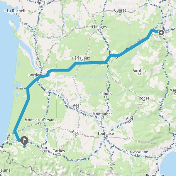 Prendre à droite et rejoindre A63. Continuer sur 139 kilomètres